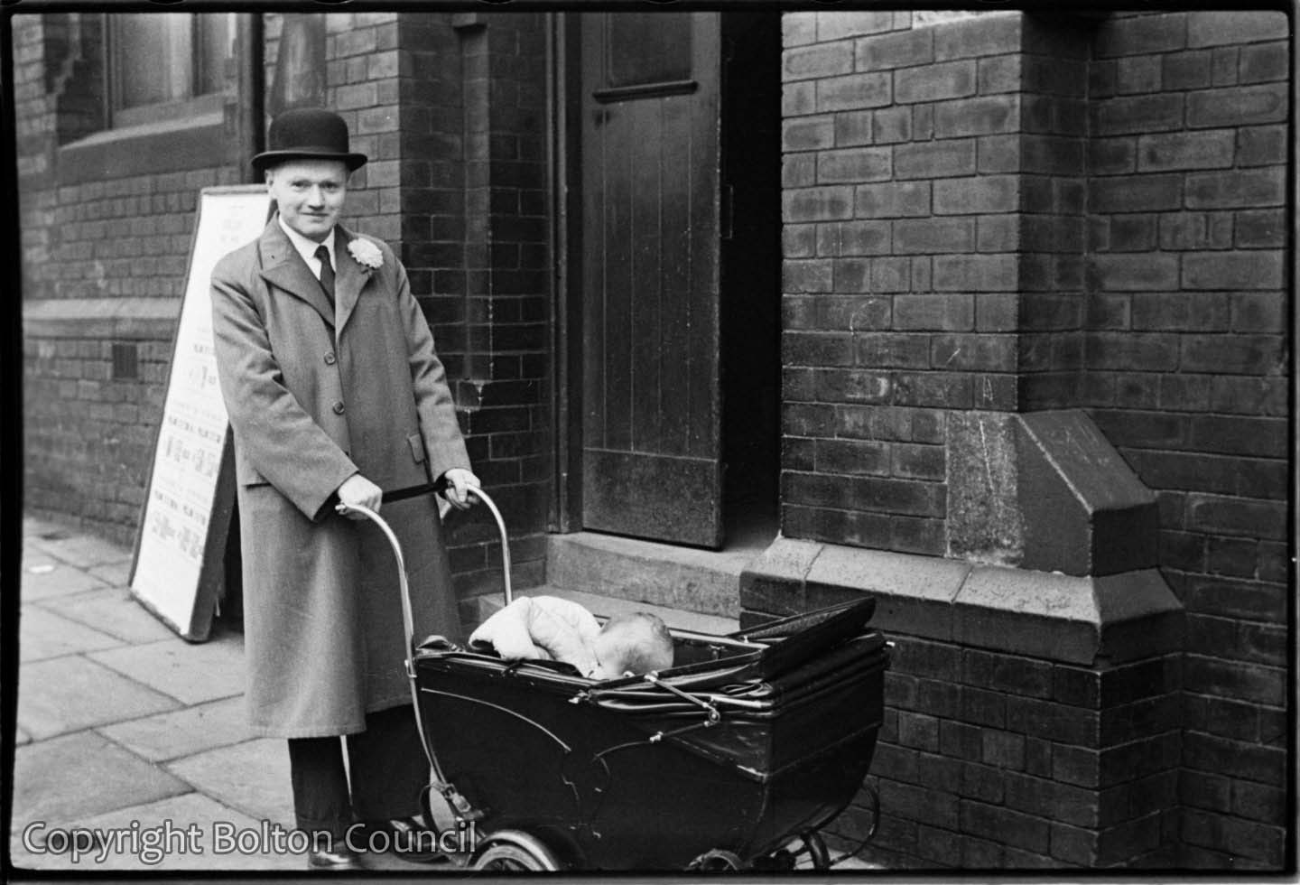 This is one of Labour’s candidates in the elections, William Joseph Allen. The photographs was identified last week by his granddaughter who had come to look around the Worktown exhibition at Bolton Museum. She told me that he did not have a baby at the time this photograph was taken and nor did any close member of his family. Her family had concluded that the baby had been borrowed for the photographic occasion. The ‘kissing the baby’ shot is evidently a traditional campaigning technique.
