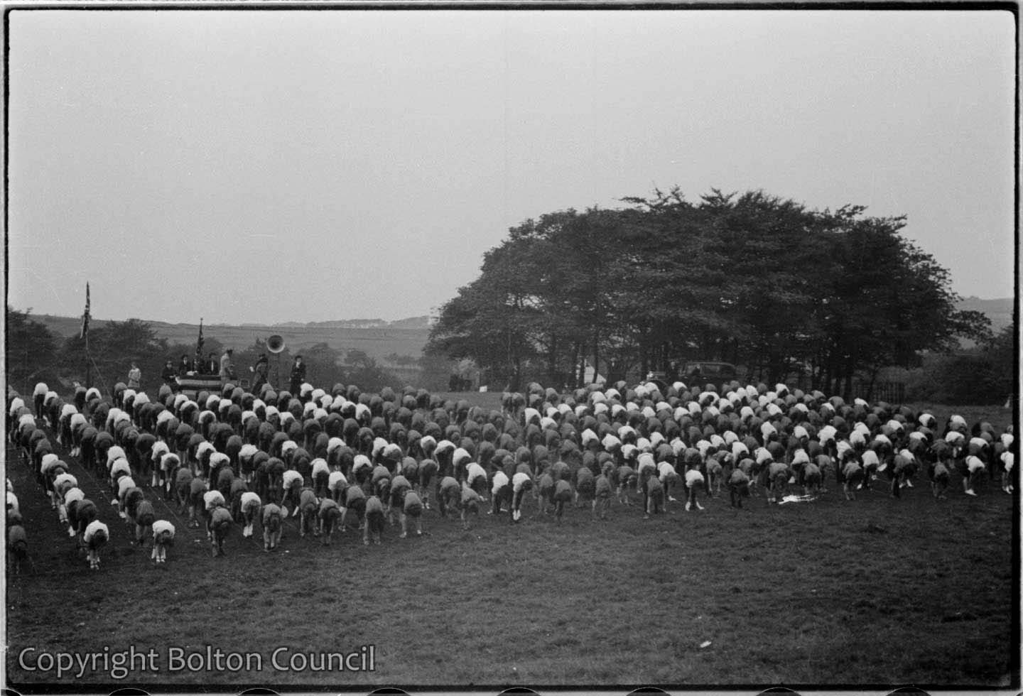 Girl Guides formed a human Union Jack at a campfire rally at Hollinhurst, Bolton. They had come up with the display for the King’s Coronation which took place on 12 May 1937 and took the opportunity of a local guide gathering to show it again. I’m so glad they did as this is one of my favourite of Humphrey Spender’s Worktown photographs.