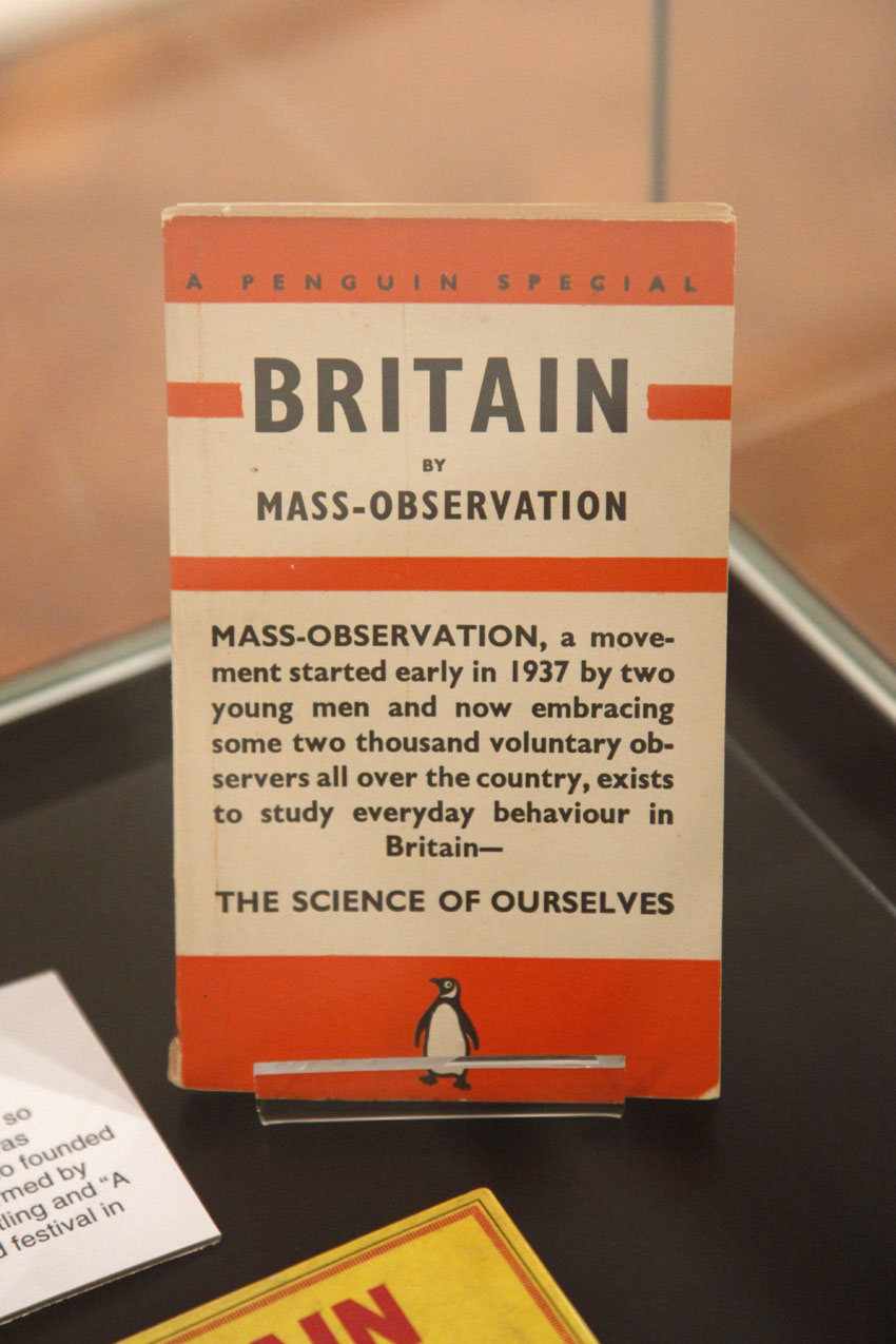 One reason for this was to bring colour in to the exhibition which features over 80 black and white photographs. But there is another important reason for us to reference the design of the Penguin paperbacks. We wanted to emphasise the importance of mass market paperback publishing in the development of Mass Observation.