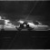 Looking out towards the sea from Blackpool promenade in the evening. Shelters for sitting in are decorated with lights and silhouetted against the darkening sky.