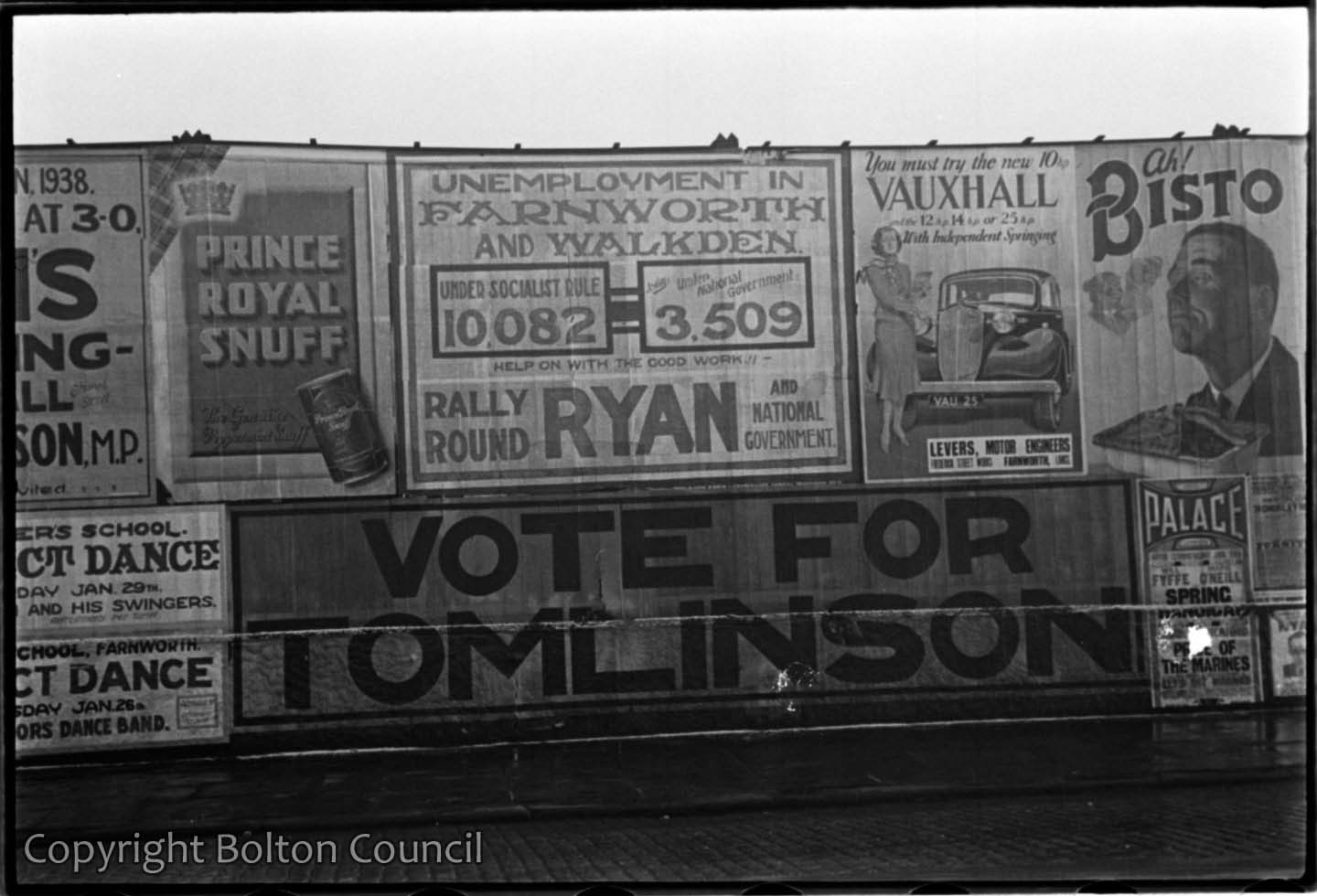 There was a parliamentary by-election in Farnworth. Candidate Herbert Ryan (National Government/Conservatives) was defeated by George Tomlinson (Labour).
